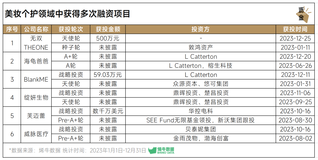 美妝個(gè)護(hù)領(lǐng)域中獲得多次融資的項(xiàng)目