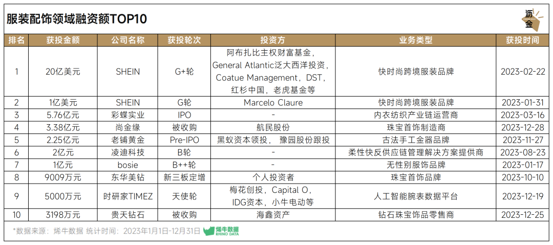 服裝配飾領(lǐng)域中獲得多次融資的項(xiàng)目