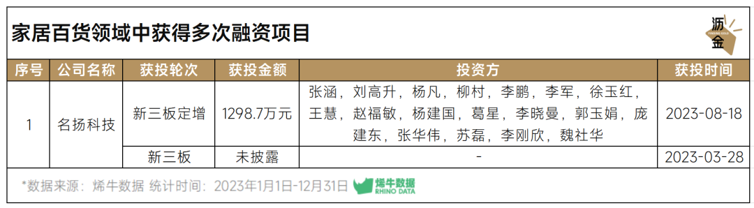 家居百貨領(lǐng)域中獲得多次融資的項(xiàng)目