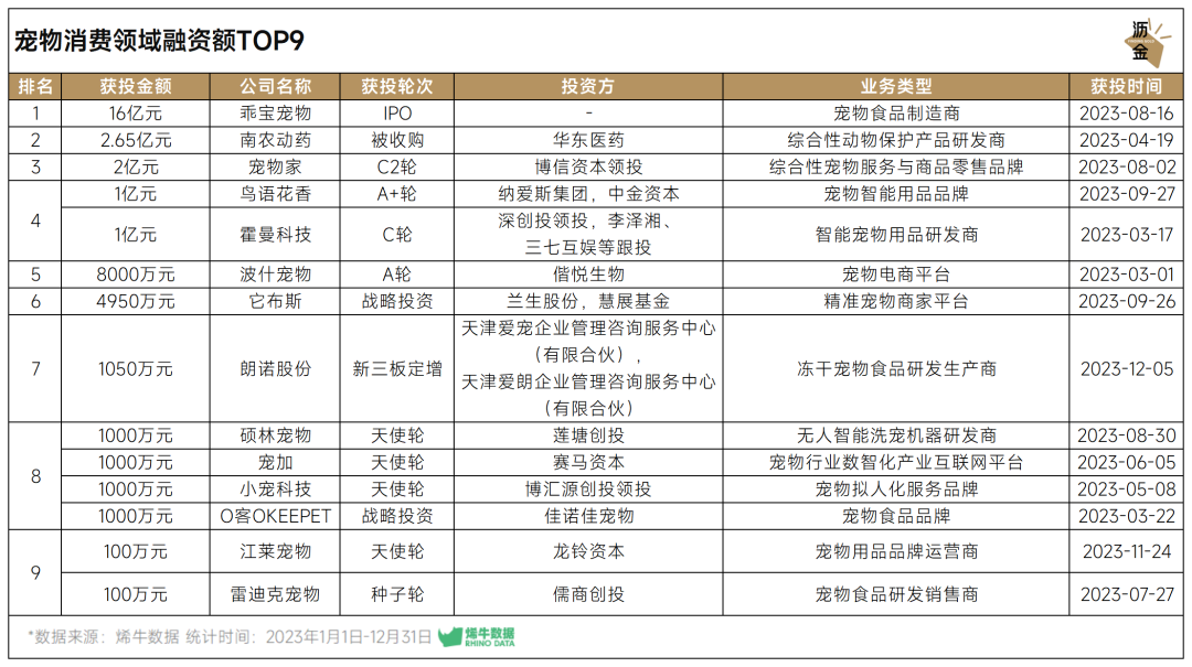 寵物消費(fèi)領(lǐng)域融資額TOP9
