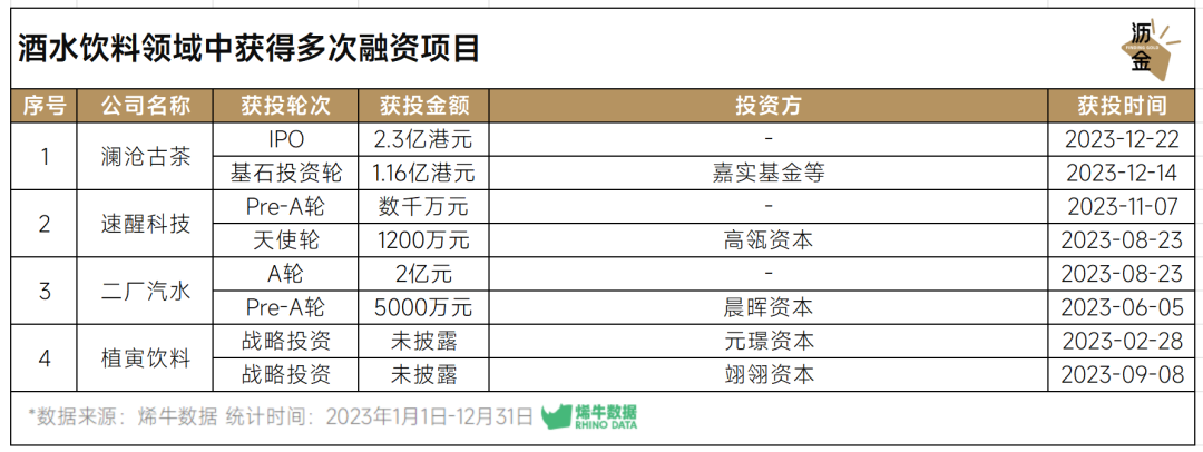 酒水飲料領(lǐng)域中獲得多次融資的項(xiàng)目