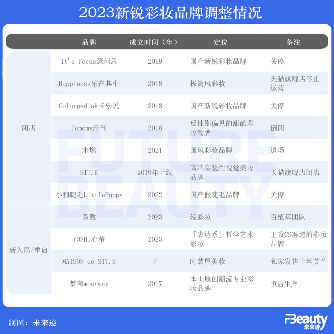 據(jù)不完全統(tǒng)計(jì),2023年共有7個(gè)國貨彩妝品牌宣布停止運(yùn)營。
