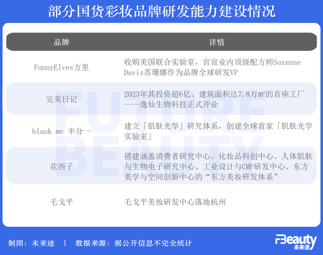 相較而言,彩妝這類裝飾性的產(chǎn)品不如護(hù)膚品的“科技屬性”高,但在近幾年,研發(fā)能力建設(shè)也成為新銳彩妝品牌們的重要建設(shè)議程。