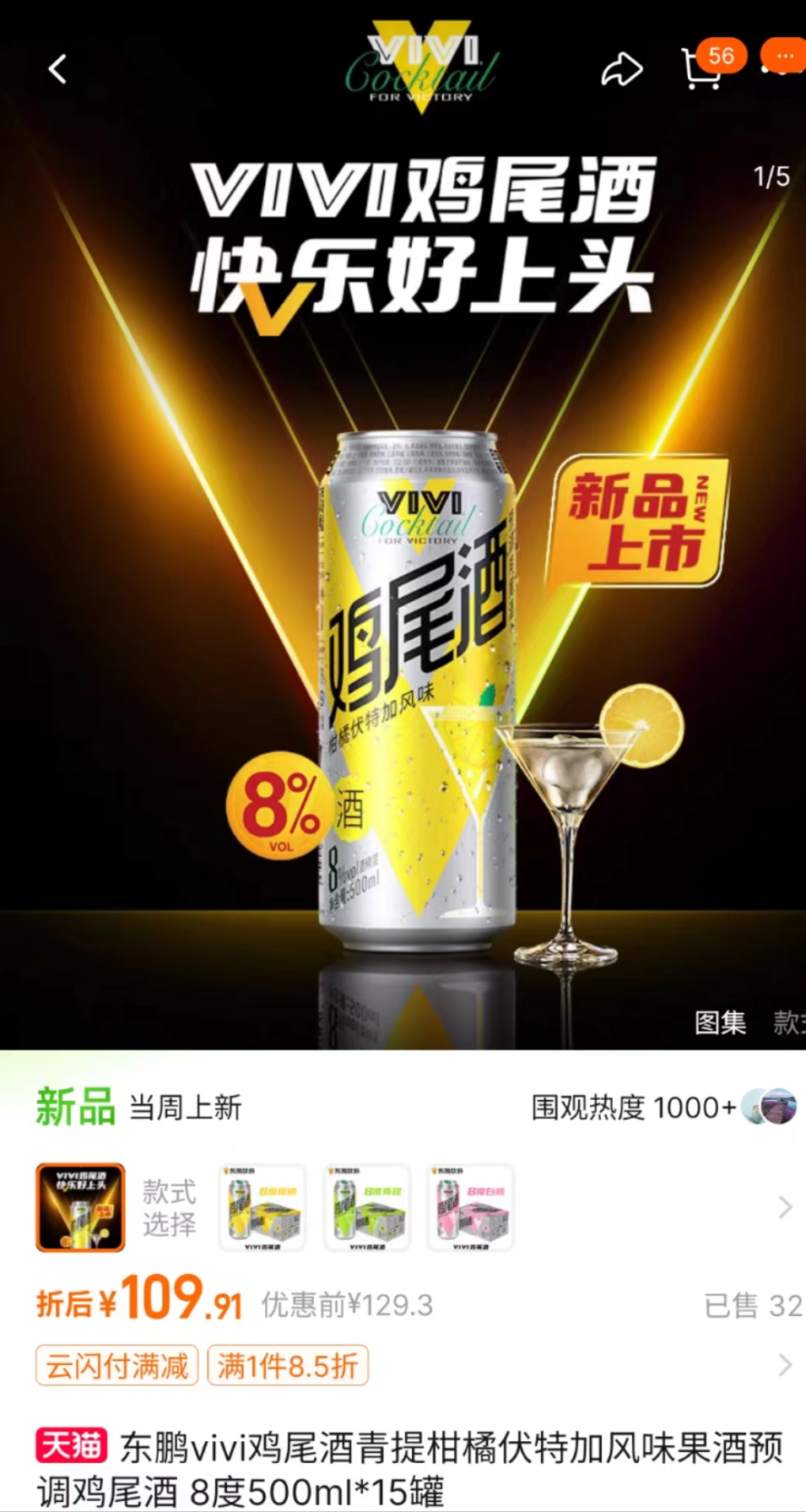 目前來看,東鵬飲料已將這一“錯(cuò)位競(jìng)爭”策略延續(xù)在低度酒市場(chǎng)上。品飲匯在東鵬飲料天貓旗艦店看到,VIVI雞尾酒新品每箱(500ml*15罐)售價(jià)為129.3元,促銷價(jià)109.91元,折算下來每罐價(jià)格約為7.3元,比RIO銳澳、三得利和樂怡低度預(yù)調(diào)酒相對(duì)便宜一些。