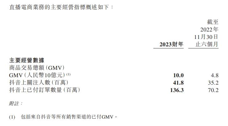 東方甄選去年8月公布的2023財年數(shù)據(jù)顯示,東方甄選全年帶貨GMV達(dá)到100億元,總訂單數(shù)達(dá)1.36億單,自營產(chǎn)品數(shù)量超過120個。自營產(chǎn)品及直播電商分部總營收為人民幣39億元;其中自營產(chǎn)品的總營收超過26億元,毛利15億元,毛利率為38.2%。