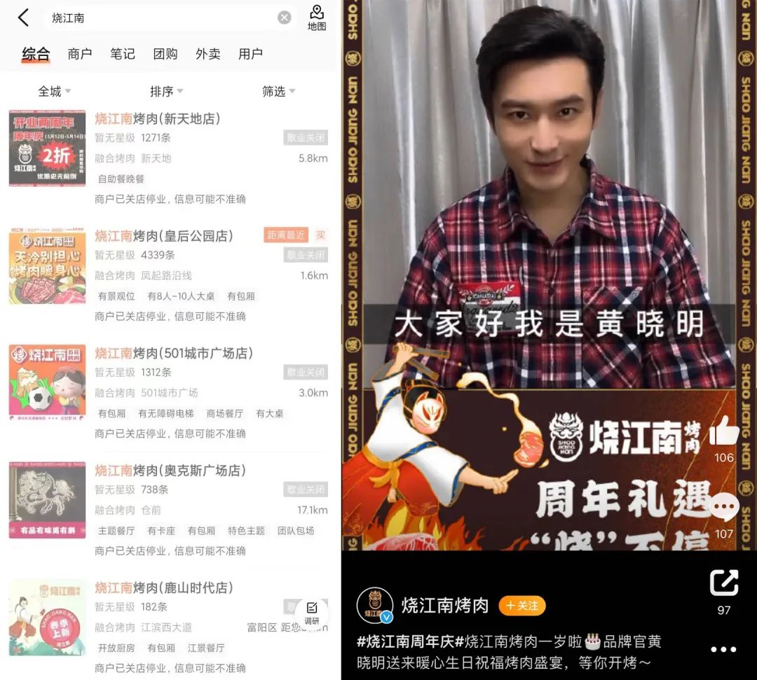 燒江南烤肉,作為曾經(jīng)明星餐飲的其中一員,在明星黃曉明作為品牌官加持下而一舉成名。但現(xiàn)在來(lái)看門(mén)店正在“去明星化”,內(nèi)參君致電燒江南天津店,據(jù)店長(zhǎng)稱天津有6家店在經(jīng)營(yíng),在對(duì)外宣傳時(shí)還會(huì)提黃曉明,但是店內(nèi)關(guān)于明星的內(nèi)容元素已經(jīng)沒(méi)有了,門(mén)店整體進(jìn)行過(guò)升級(jí)。