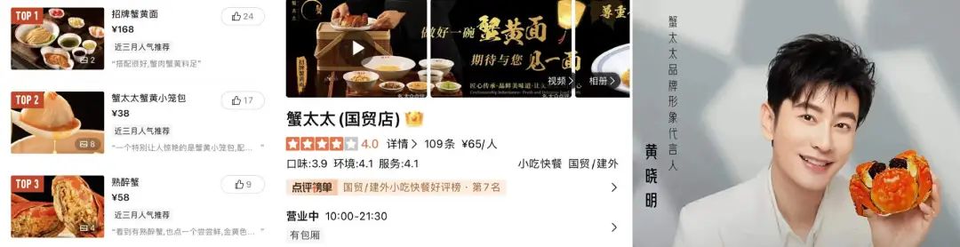 為了擴(kuò)大知名度,蟹太太充分利用明星效應(yīng)進(jìn)行營(yíng)銷。從2018年起就請(qǐng)了黃曉明做代言人,無(wú)論是社交還是電商平臺(tái),“黃曉明推薦”“黃曉明代言”等字樣都格外明顯。蟹黃面館同樣如此,不僅將抖音上的套餐照片換成了黃曉明,就連短視頻平臺(tái)上都對(duì)外稱“黃曉明代言推薦”…2023年12月29日蘇州旗艦店開(kāi)業(yè)時(shí),更是邀請(qǐng)了吳啟華等一眾明星驚喜亮相。