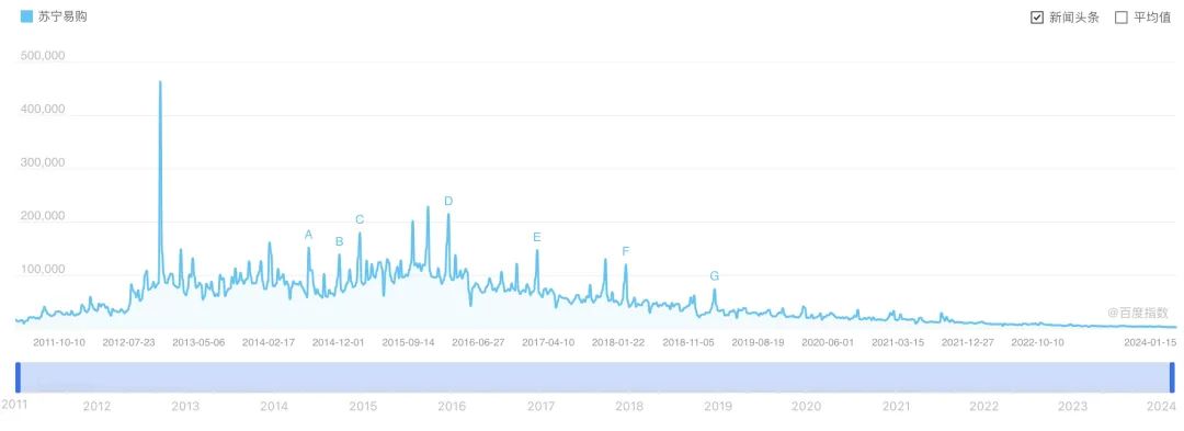 社交平臺(tái)上,關(guān)于蘇寧易購(gòu)的風(fēng)評(píng)則呈現(xiàn)兩邊倒,有批評(píng)的聲音,吐槽蘇寧易購(gòu)客服不力,也有不少夸贊蘇寧易購(gòu)售后服務(wù)出色?梢源_定的是,這些年,外界對(duì)于蘇寧易購(gòu)的關(guān)注度在逐年下滑。其中,2023年,蘇寧易購(gòu)的百度搜索指數(shù)達(dá)到十年來(lái)的最低,市場(chǎng)存在感進(jìn)一步減弱。