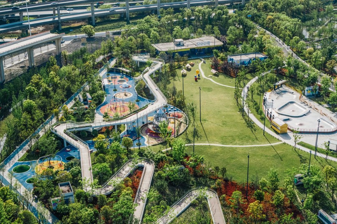 2、23萬(wàn)方綠地+江南生態(tài)水系,打造“公園里的新天地”: