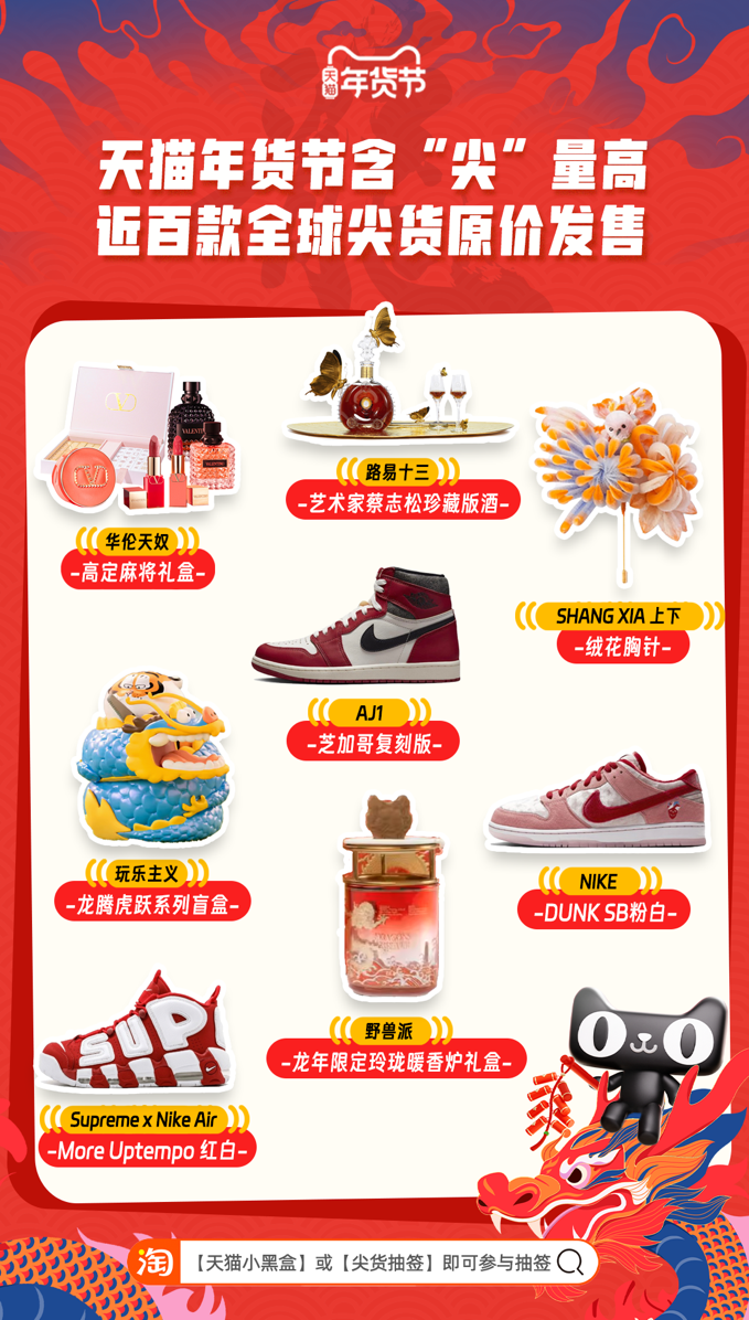 據(jù)了解,這些尖貨都將在天貓年貨節(jié)期限陸續(xù)發(fā)售。上淘寶搜索“天貓小黑盒”或“尖貨抽簽”即可查看發(fā)售時間,參與抽簽、搶購。
