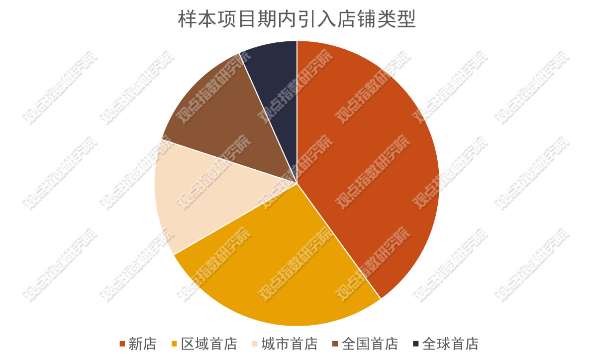 回顧2023年,觀點(diǎn)指數(shù)統(tǒng)計(jì)下的樣本項(xiàng)目引入超過200家店鋪,其中頭部企業(yè)的重點(diǎn)項(xiàng)目有更高的品牌吸引力,如三里屯太古里期內(nèi)就有不少首店及新店開業(yè)。