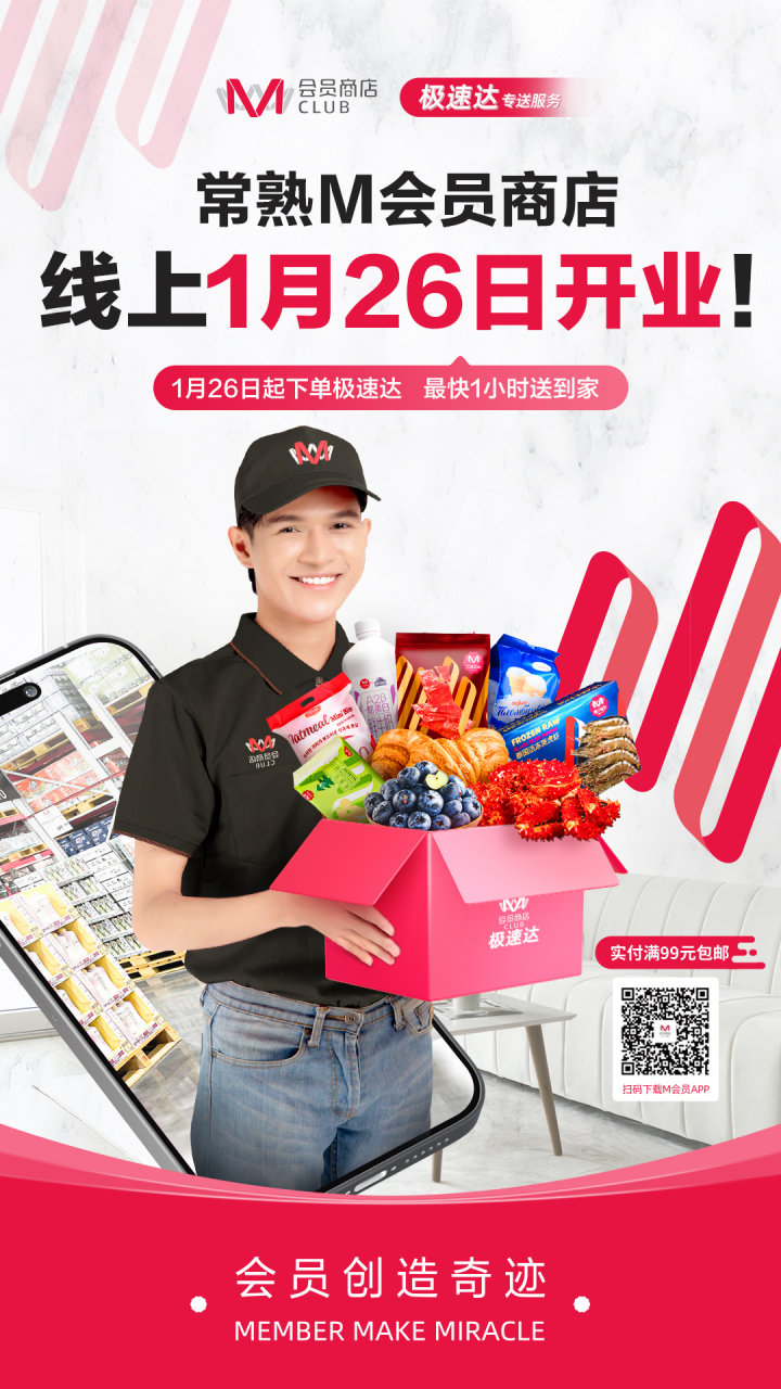 1月26日,M會(huì)員商店常熟店線上搶先開業(yè)。