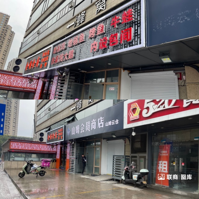 ▲上圖為筆者近日拍攝,山姆前置倉(cāng)門頭已經(jīng)去除,被其它廣告位替代。下圖為筆者2023年12月拍攝