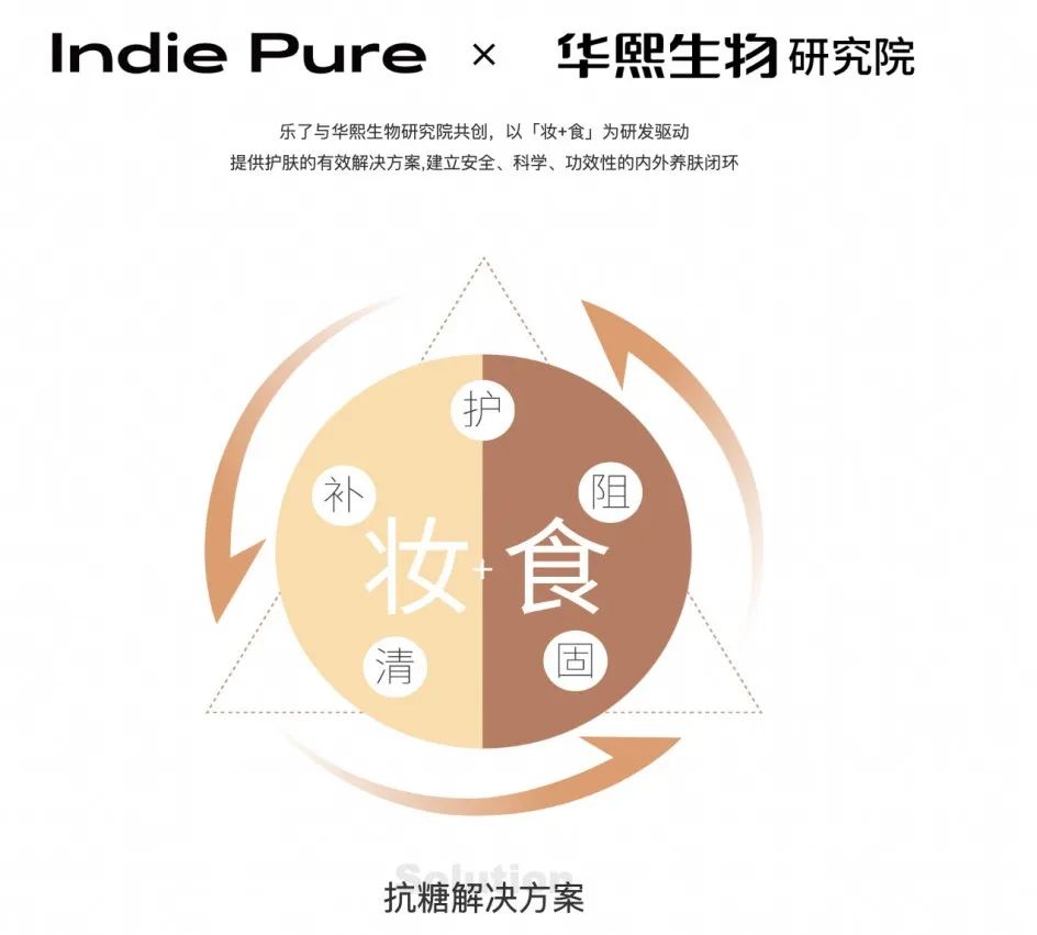 “妝食同研”是“妝食同源”的升維。國內(nèi)首個(gè)打出“妝食同研”的品牌“樂了”(Indie Pure),其創(chuàng)始人Kris稱,“研”與“源”一字之差,內(nèi)涵卻不同!皧y食同研”不刻意追求妝與食源自同一種物質(zhì),而是以用戶同一需求出發(fā),聚焦在同一種功效上,去研發(fā)出最能解決用戶痛點(diǎn)的產(chǎn)品組合。