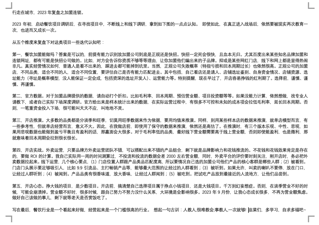 2024,如果你在考慮餐飲加盟,不妨先試著紙上談兵:一些過(guò)來(lái)人有故事和經(jīng)驗(yàn)想和你分享。