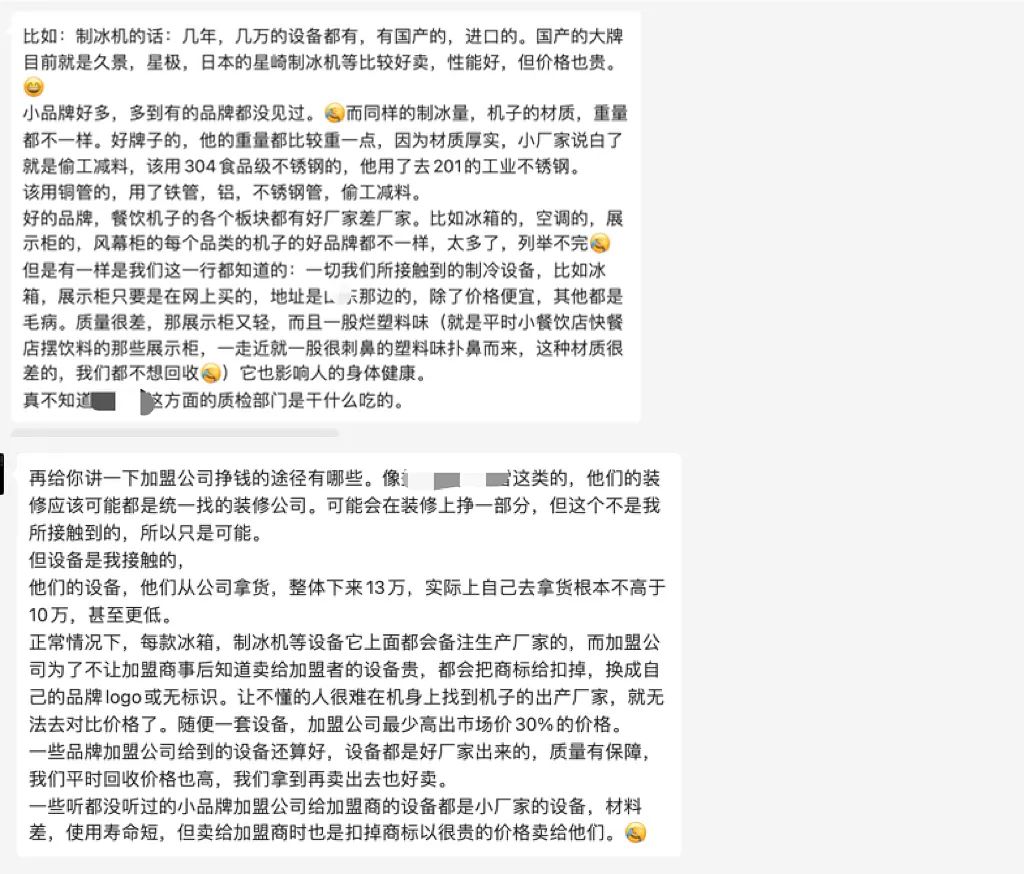 就算擁有充足的預(yù)算,一些加盟商也會(huì)在看到品牌方運(yùn)來(lái)的廚具時(shí)感受到不同的“算盤”或“誠(chéng)心”。