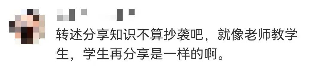 事情漸漸發(fā)酵有了熱度,引起網(wǎng)友們的熱烈討論,有人支持博主維權(quán),表示不能拋開(kāi)事實(shí)不談,必須尊重原創(chuàng)。也有人認(rèn)為轉(zhuǎn)述分享知識(shí)不算抄襲,就像老師教學(xué)生,學(xué)生再分享一樣。