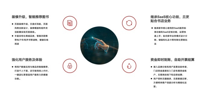 經(jīng)過歷時(shí)一年的雙方合作共創(chuàng),河北新華書店提出的千人千面,在線試聽,大客團(tuán)購,門店自送,親友送禮,門店智能便捷搜書找書等想法,結(jié)合有贊的商城建設(shè)經(jīng)驗(yàn),在不斷嘗試和迭代中逐步實(shí)現(xiàn)。也和新華用戶系統(tǒng),倉儲(chǔ)系統(tǒng)等實(shí)現(xiàn)線上自動(dòng)化書目入庫出庫,訂單物流配送及顧客到店自主提貨等。