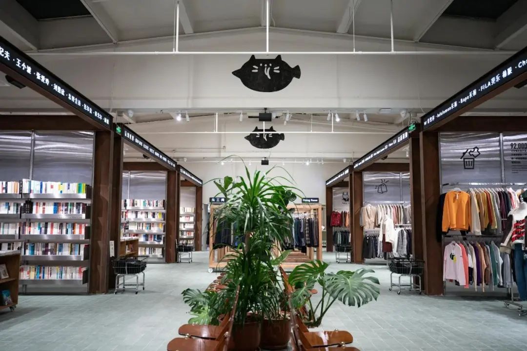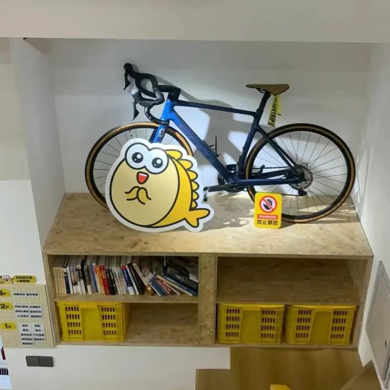 樓梯轉(zhuǎn)角處,是一排書和一輛捷安特的山地車,上到二樓是各種廚房用品、家居百貨等,三樓主要售賣圖書音像,同時提供休息區(qū)域。