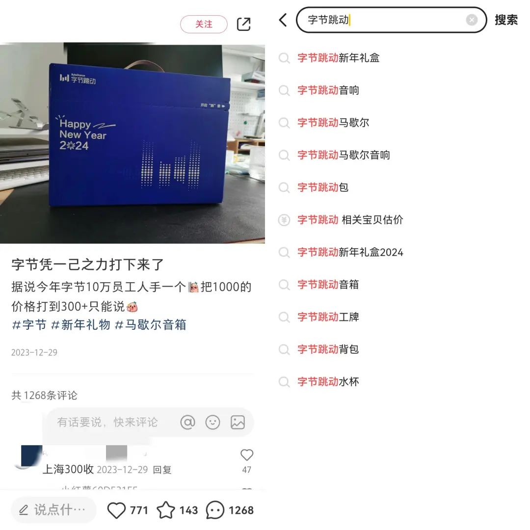 最有性價比的,可能就是各個大廠的新年禮盒:字節(jié)跳動直接把千元馬歇爾藍牙音箱價格“打了下來”,二手價300—420元,不僅在小紅書有了上千條相關筆記,還在閑魚上硬生生搜出一個聯(lián)想詞。