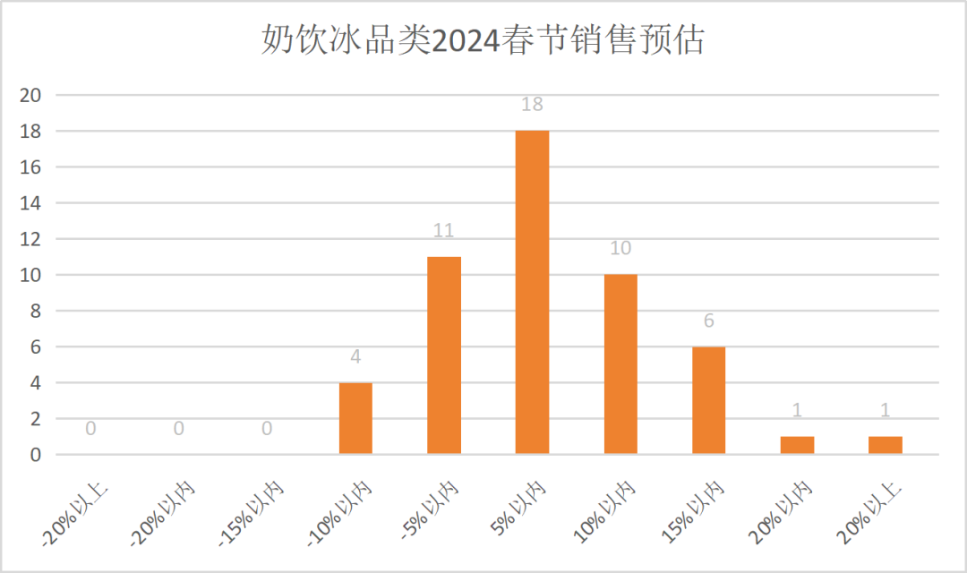 調(diào)查顯示:有47家企業(yè)預(yù)測(cè)銷售上漲(占比92%),4家企業(yè)預(yù)測(cè)銷售下跌(占比8%),預(yù)估銷售的中位數(shù)與眾數(shù)都為增長(zhǎng)10%,平均值為增長(zhǎng)9.61%。酒水節(jié)日屬性較強(qiáng),春節(jié)期間聚餐、走親訪友必不可少,大部分企業(yè)預(yù)測(cè)5%-15%的增長(zhǎng)幅度,明顯好于往年。