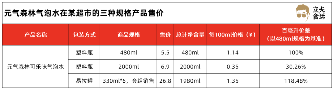 直接對(duì)比百毫升單價(jià),從內(nèi)容物含量角度,元?dú)馍诌@是直接給自己的產(chǎn)品打了個(gè)三折啊!