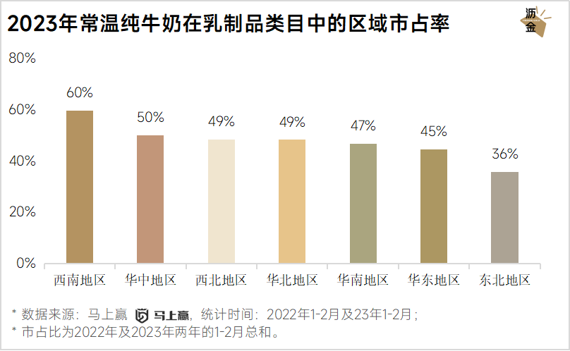2023年常溫純牛奶在乳制品類目中的區(qū)域市占率