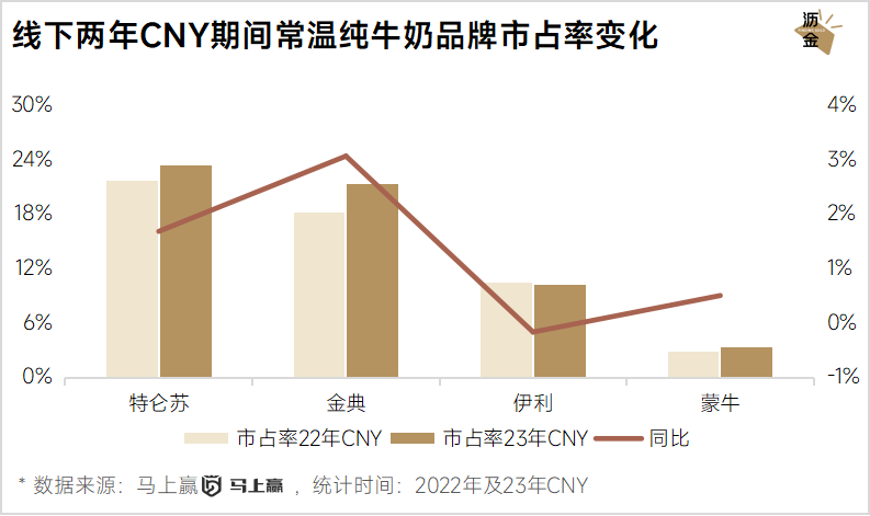 線下兩年CNY期間常溫純牛奶品牌市占率變化