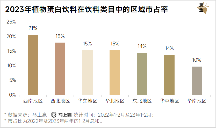 2023年植物蛋白飲料在飲料類目中的區(qū)域市占率
