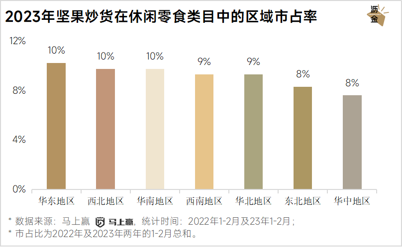 2023年堅果炒貨在休閑零食類目中的區(qū)域市占率