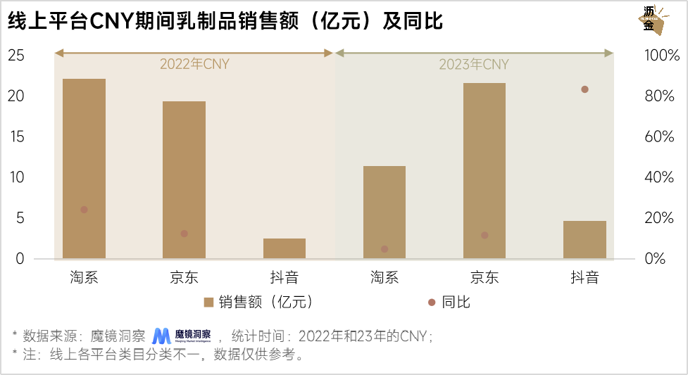 線上平臺CNY期間乳制品銷售額(億元)及同比