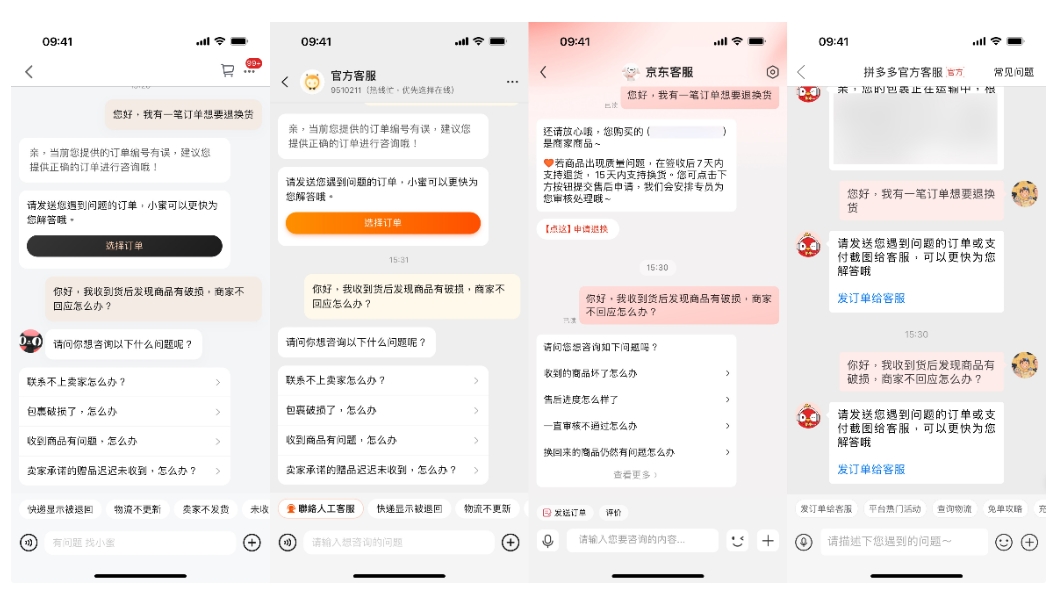 雷科技此前的實(shí)測(cè)報(bào)道《電商平臺(tái)的智能客服,一個(gè)比一個(gè)智障?》中就提到,絕大部分平臺(tái)的智能客服相應(yīng)速度都很快,最常見的“退換貨”訴求也能準(zhǔn)確識(shí)別,但給出的退貨指引不太清晰。且面對(duì)稍微復(fù)雜的一點(diǎn)的問(wèn)題,比如“收到貨品有破損該怎么辦”、“商家無(wú)法聯(lián)系”等,智能客服也沒法一一給出準(zhǔn)確答復(fù)。