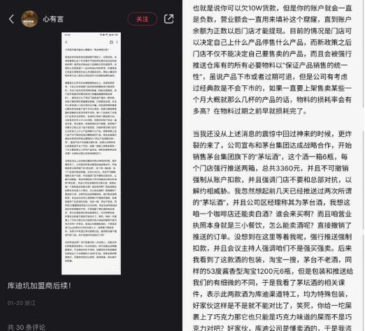 前段時(shí)間,一位聯(lián)營(yíng)商在社交媒體平臺(tái)指出"門店喪失了對(duì)財(cái)務(wù)權(quán)的把控""物料的損耗率難以估計(jì)""以解約威脅聯(lián)營(yíng)商訂酒"等管理問題,表示"庫(kù)迪咖啡已死"。還有些聯(lián)營(yíng)商開始了自暴自棄的"自殺"式的經(jīng)營(yíng):物料開封過了有效期后繼續(xù)使用、物品混用、對(duì)飲品偷工減料等。