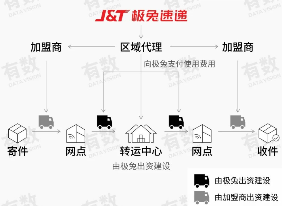 但無論是價格戰(zhàn)還是并購戰(zhàn),對于極兔這樣一家從零開始的快遞公司而言,迅速在全國搭建起一張覆蓋全國的攬收和派送網(wǎng)絡的關鍵是——“區(qū)域代理制”。
