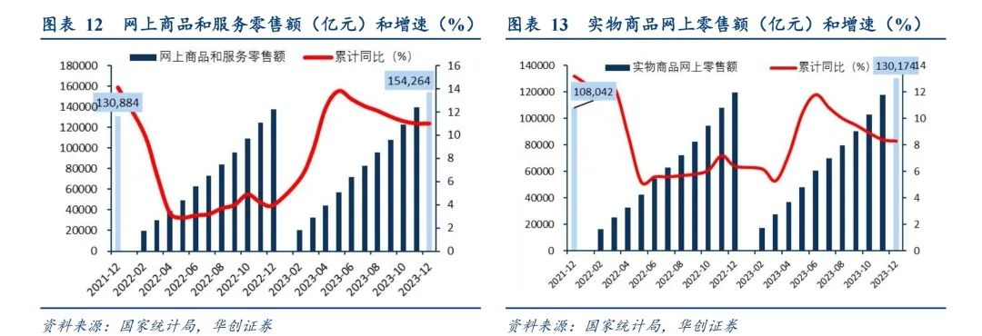 根據(jù)國(guó)家統(tǒng)計(jì)局的數(shù)據(jù),2023年社消品零售總額47.15萬(wàn)億元,同比增長(zhǎng)7.2%,全國(guó)網(wǎng)上零售額為15.43萬(wàn)億元,同比增長(zhǎng)11.0%,其中實(shí)物商品網(wǎng)上零售額13.02萬(wàn)億元,占社會(huì)消費(fèi)品零售總額比重達(dá)27.6%,人們的日常消費(fèi)場(chǎng)景正在轉(zhuǎn)移。