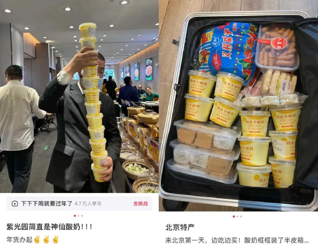 甜口、價格適中、幾乎所有人日常生活都會吃卻又富有本地特征,別管味道到底能不能上天,單單這幾點就足夠紫光園酸奶榮登新一代北京土特產(chǎn),隱隱有超越稻香村的趨勢。
