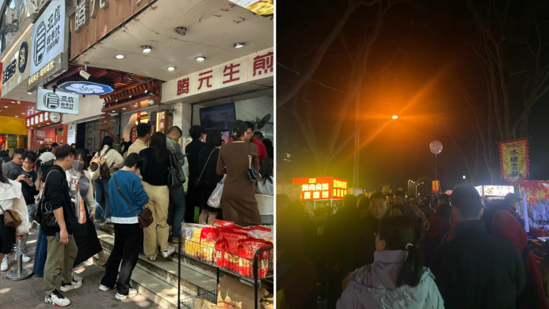 不止廟會,根據(jù)美團數(shù)據(jù)顯示,今年春節(jié)期間四線以下地區(qū)消費同比增速最快,下沉市場迎來強勁回暖,各省市城鄉(xiāng)的早市、晚市、小吃街,也同樣“擠滿了人”。