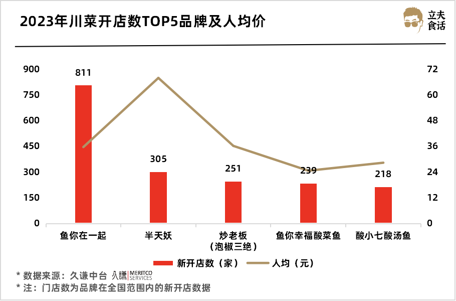 2023年川菜開店數(shù)TOP5品牌及人均價
