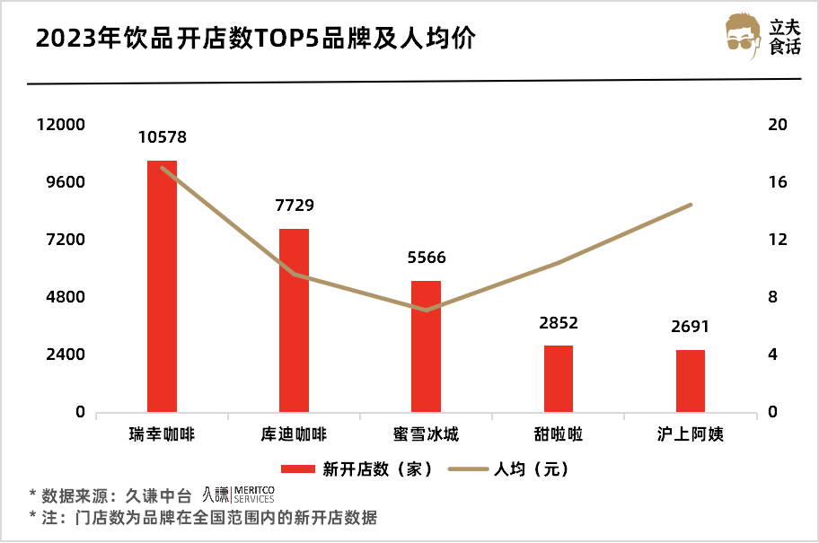 2023年飲品開店數(shù)TOP5品牌及人均價