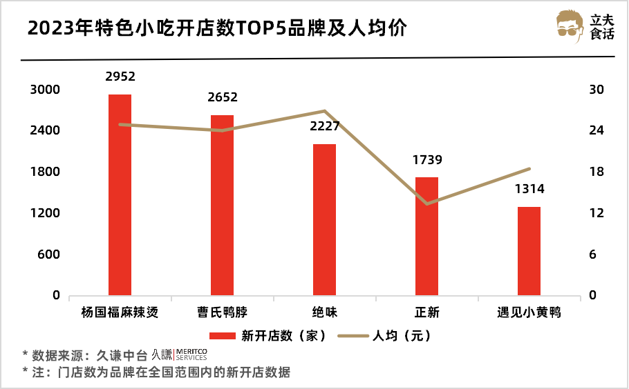 2023年特色小吃開店數(shù)TOP5品牌及人均價