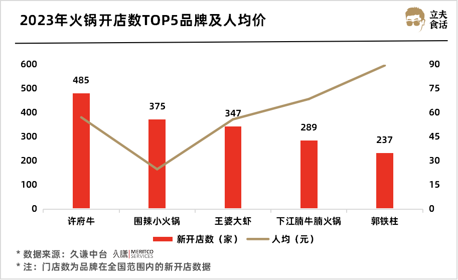 2023年火鍋開店數(shù)TOP5品牌及人均價
