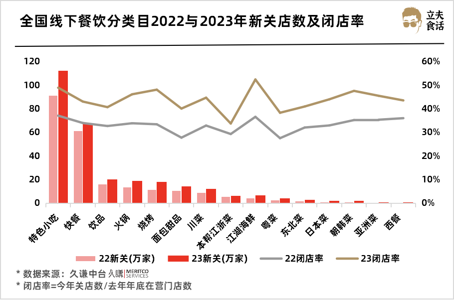 全國線下餐飲分類目22與23年新關(guān)店數(shù)及閉店率