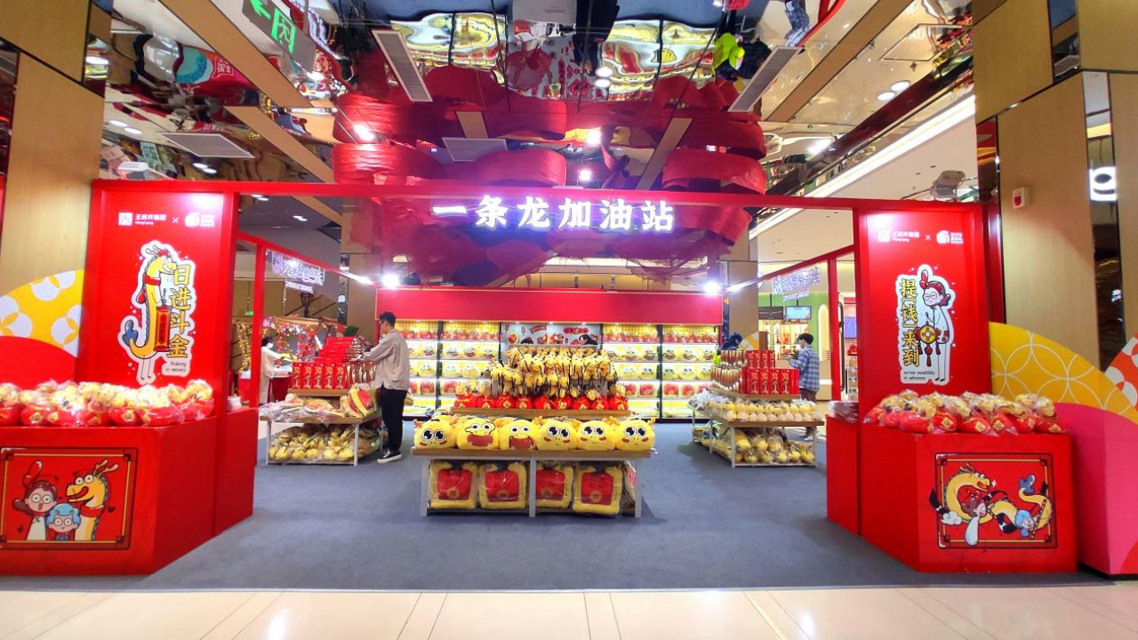 王府井集團構建了豐富多樣的龍年購物場景,以充滿龍年年味的文化元素傳遞國潮文化的獨特魅力,攜手國漫IP“我的爸爸是條龍”在全國門店開啟新年消費季系列活動!褒埌帧备哒{(diào)變身“美好生活送福官”,龍游王府井各大門店,為消費者帶來線上線下全方位互動體驗。北京、成都、長沙、萬寧、樂山等王府井門店均設有大型“我的爸爸是條龍”主題IP快閃店,為顧客帶來跨次元龍年周邊。