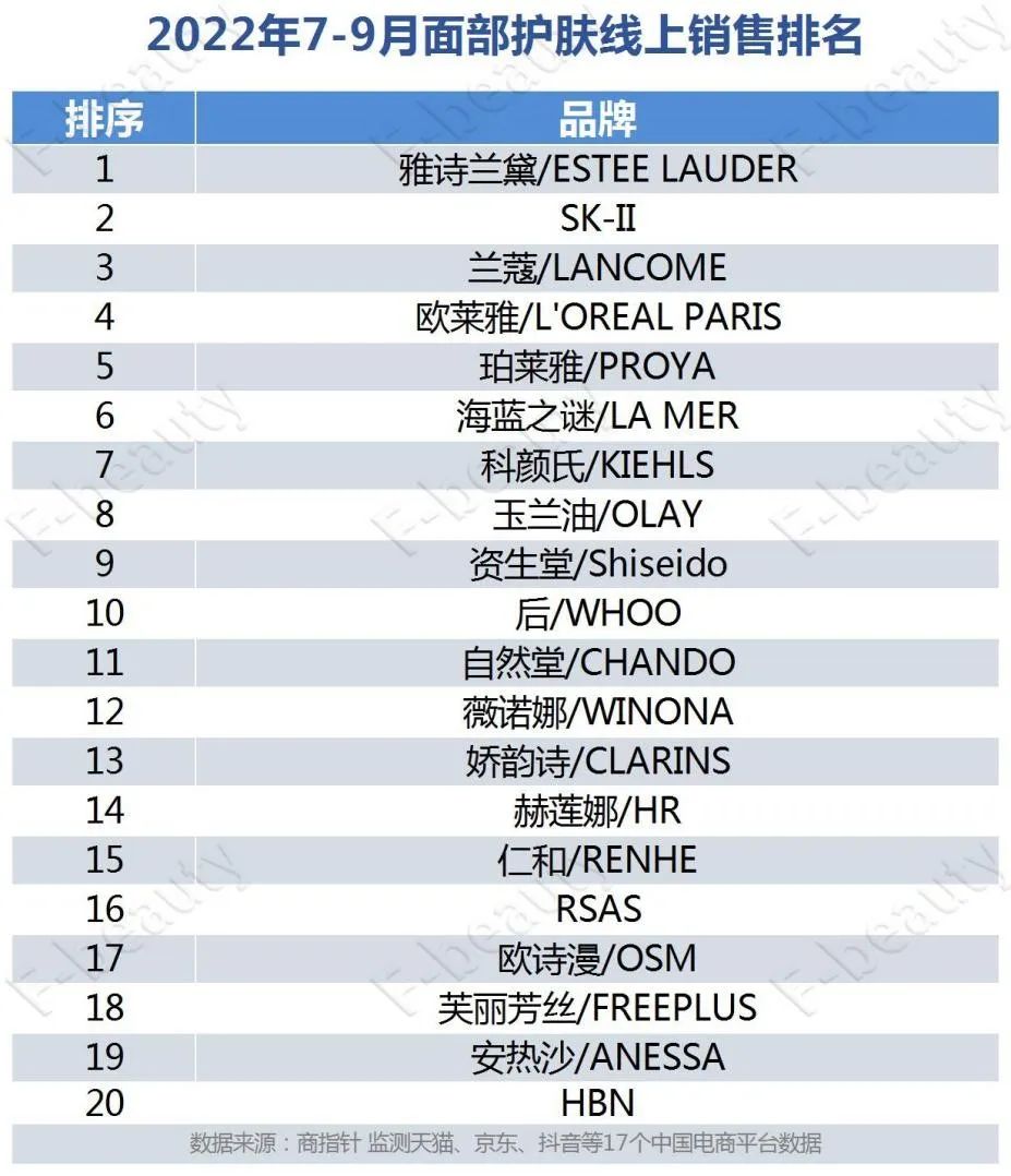 只是,業(yè)績似乎說明SK-II的年輕化營銷已阻擋不了產(chǎn)品單一導致的問題。據(jù)商指針監(jiān)測的17個電商平臺2022年7-9月面部護膚線上銷售數(shù)據(jù)看,SK-II排名第二,與雅詩蘭黛、蘭蔻體量相當,但零售額和零售量同比都出現(xiàn)了兩位數(shù)的下滑。