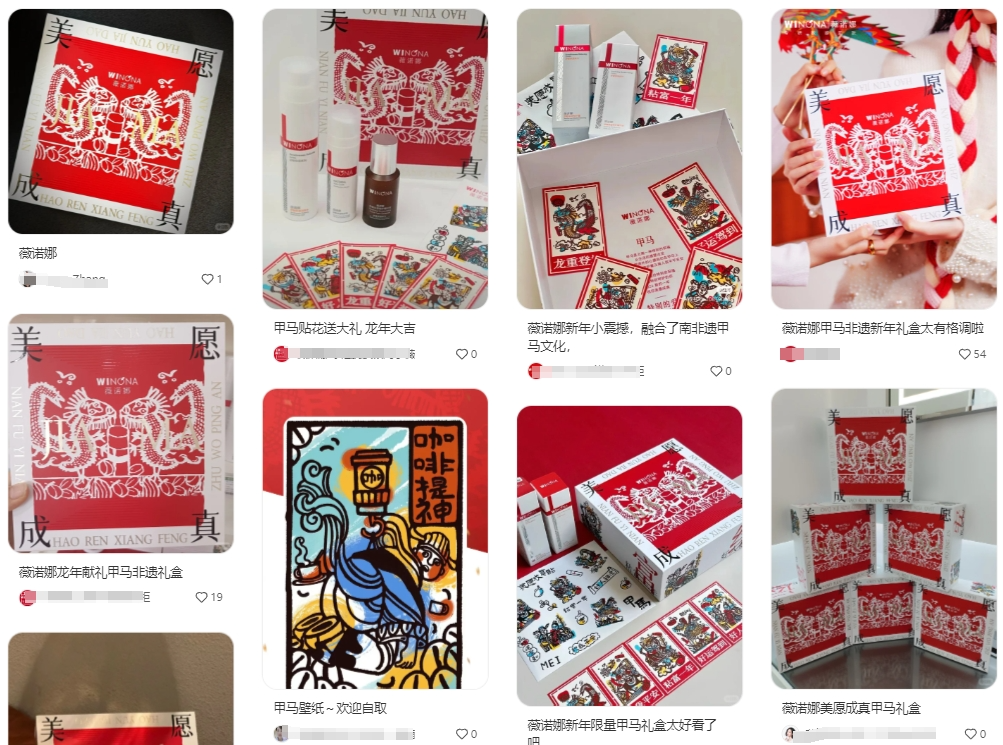 服裝品牌lululemon以詠春拳為主題的新春廣告,就被網(wǎng)友評(píng)為“絕口不提年,處處都是年味”的范本。而美妝品牌中,「薇諾娜」就溯源了云南的一種非遺文化「甲馬」,并將其融入到新年禮盒的設(shè)計(jì)當(dāng)中,打出“遇見非遺,愈見多一種美”的口號(hào)。