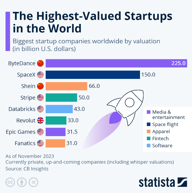 全球獨(dú)角獸估值排行 圖源:statista