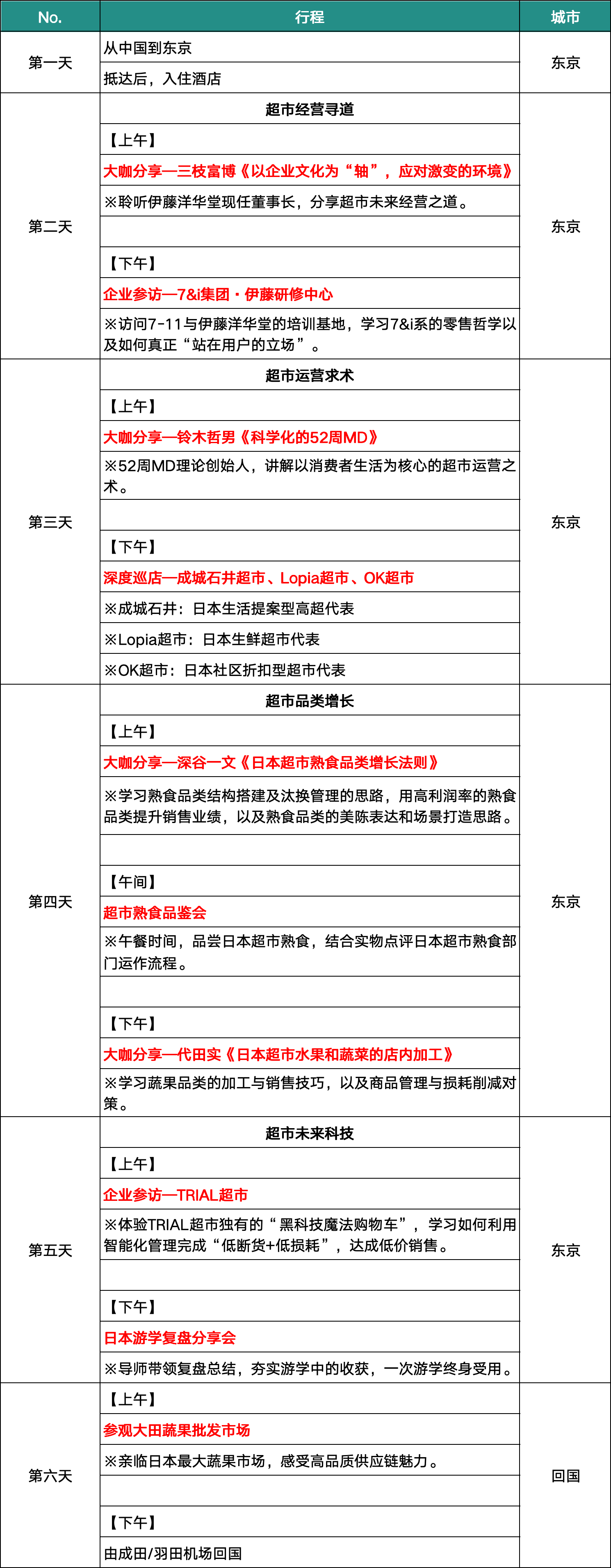 以日本超市新標(biāo)桿為案例,以企業(yè)參訪、大咖分享、深度巡店、總結(jié)復(fù)盤的學(xué)習(xí)方式全方位拆解日本超市經(jīng)營模式、運(yùn)營方法、品類打法、科技趨勢,匯總?cè)毡境械某晒?jīng)驗(yàn)。