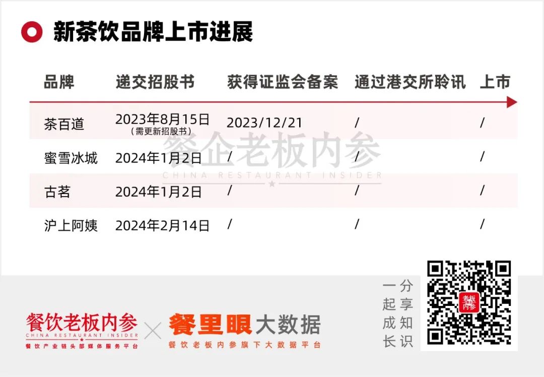 不過,茶百道面臨的挑戰(zhàn)并未結(jié)束,其在去年8月15日提交的招股說明書已失效(有效期為6個月),需要更新其財務(wù)和經(jīng)營數(shù)據(jù),重新激活上市流程。