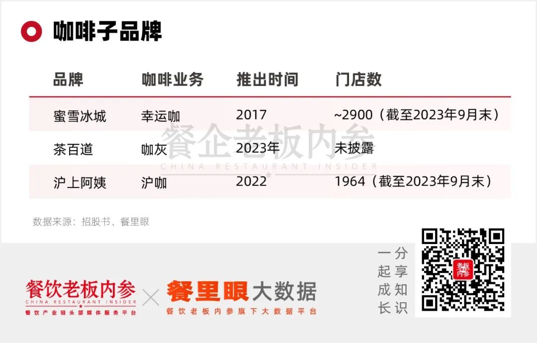 隨著茶咖的融合趨勢蔓延,蜜雪冰城、滬上阿姨和茶百道紛紛推出了咖啡子品牌,適應(yīng)消費者對多樣化飲品需求的增長。