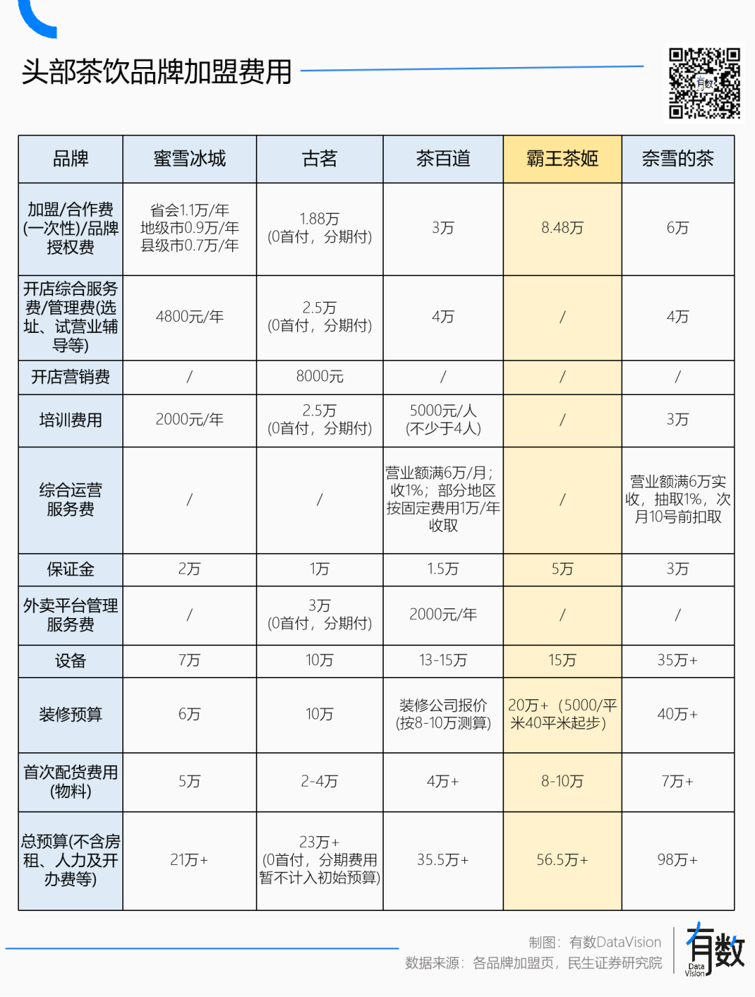 哪怕是在加盟費(fèi)用早已翻倍的今天,在社交媒體掀起巨浪的“霸王茶姬加盟”話題中,也不乏江浙滬二線城市門(mén)店日均銷量千杯,一年回本的案例。